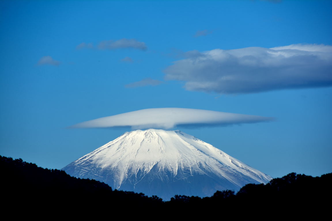 富士山頂上にかかる笠雲を見ることができました。