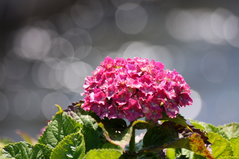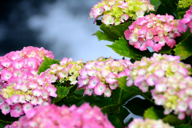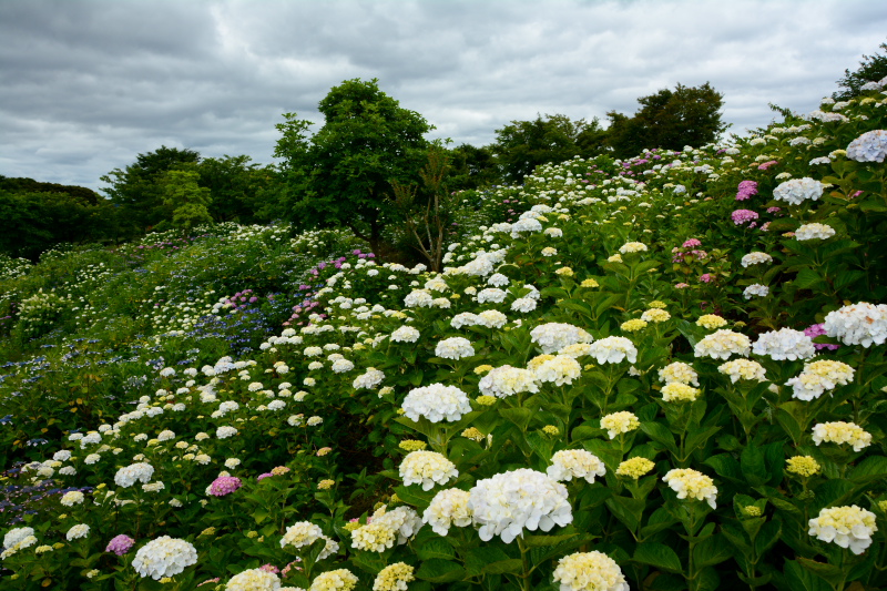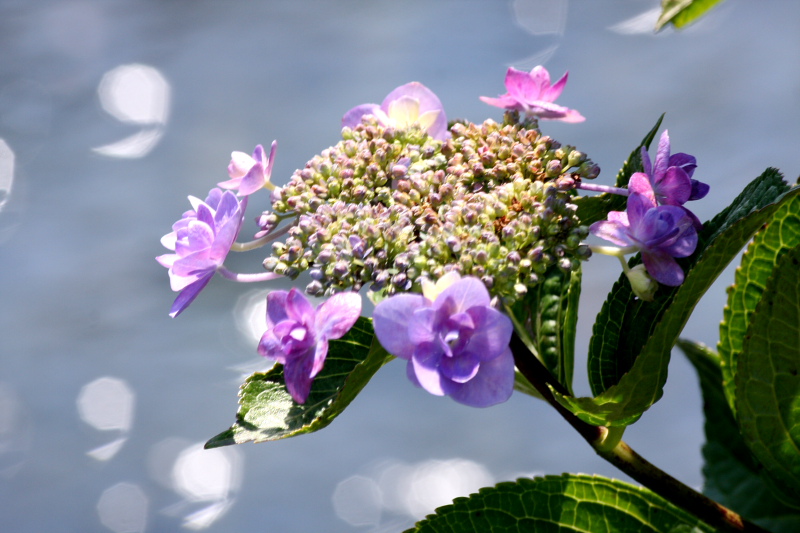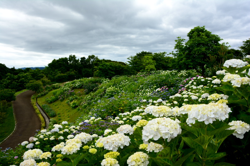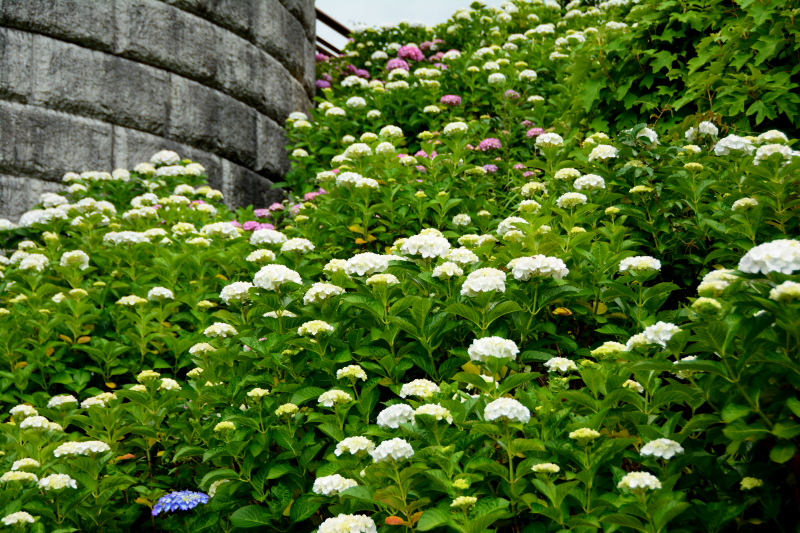 ぐるっと回りあじさいの花やハナアオイを撮りました。