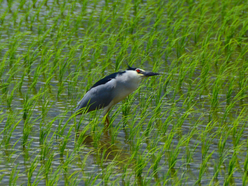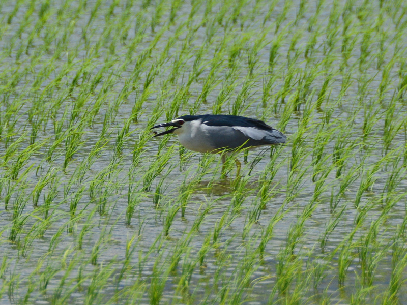 昼頃にハナアオイ農道でゴイサギという鳥が田んぼの中で
