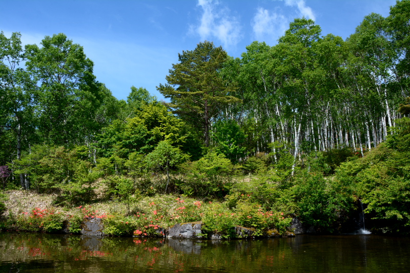 白樺林にレンゲつつじ! 八千穂高原周辺