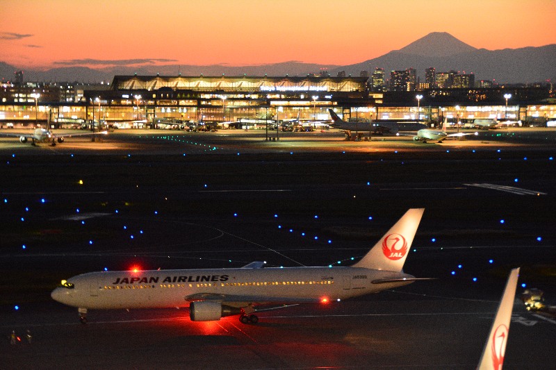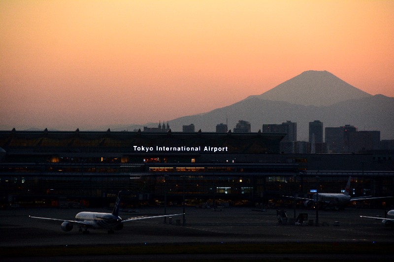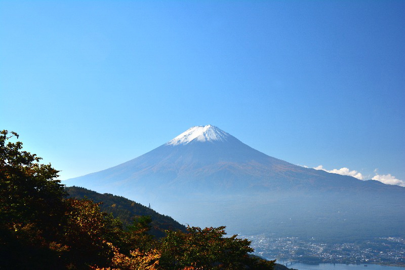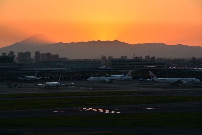 中央にうっすらと富士山