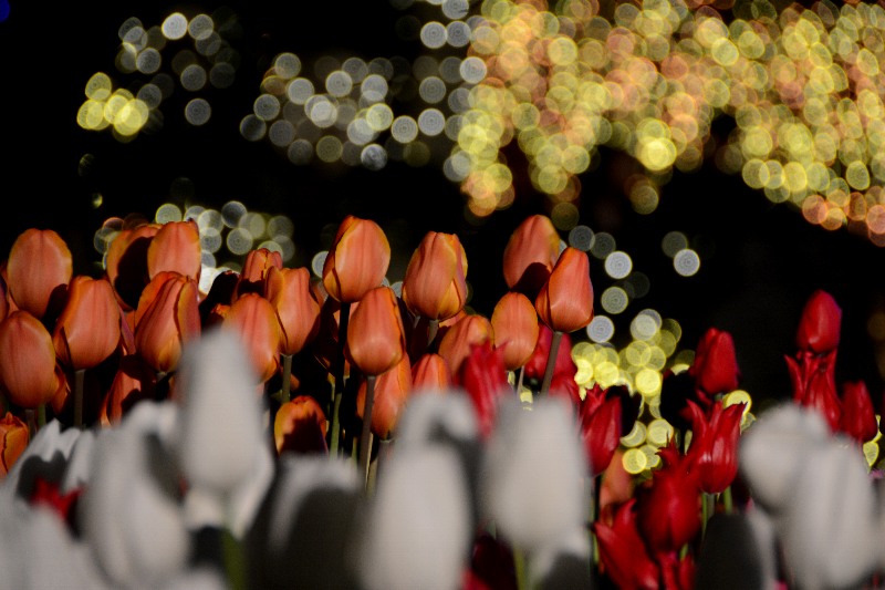 チューリップとイルミネーション