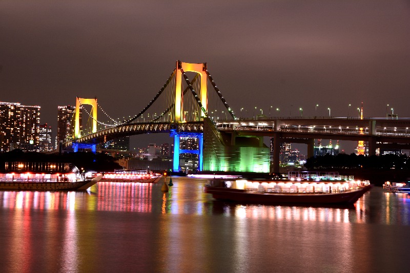 レインボーブリッジと向こう岸の東京タワーや