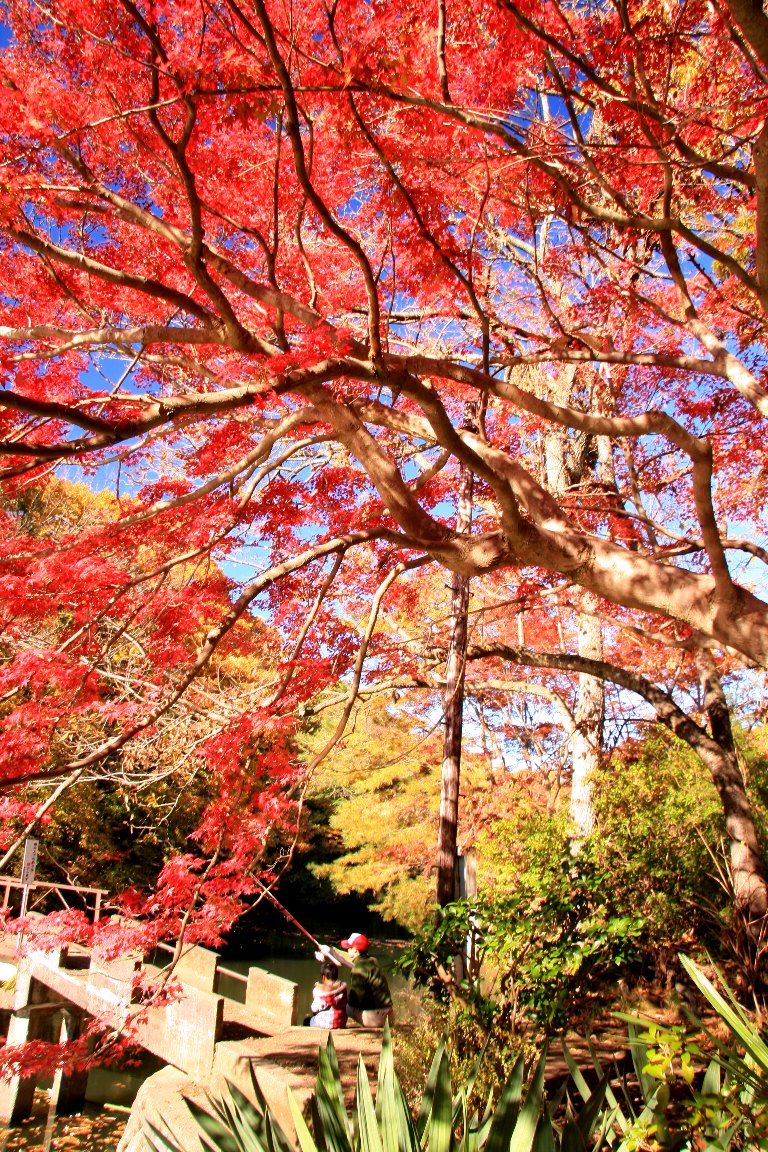 9時を過ぎる頃、親子連れの釣り客や紅葉見物の