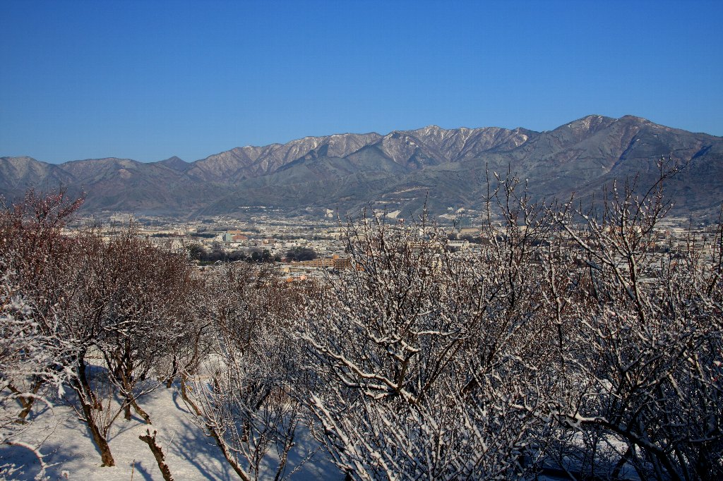 1月         丹沢山塊と秦野市街の雪景色