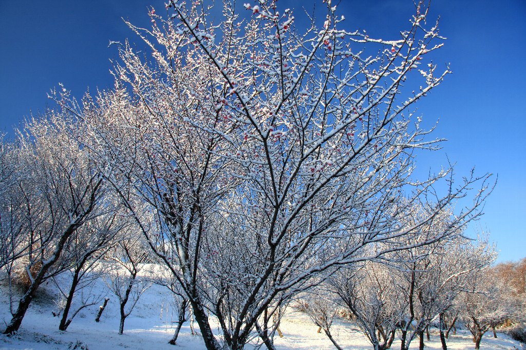 1月 雪かぶる紅梅 県道62号線上町交差点付近