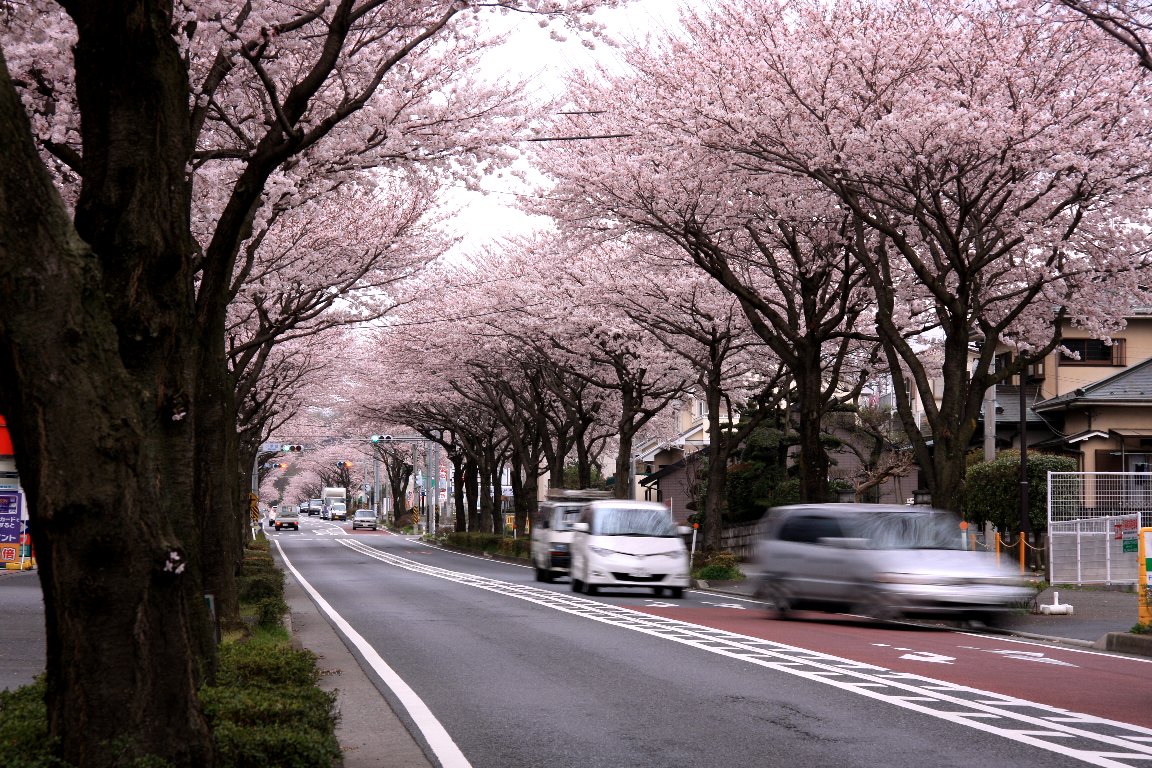県道62号線白笹稲荷入り口付近から早朝の桜並木 桜(3)