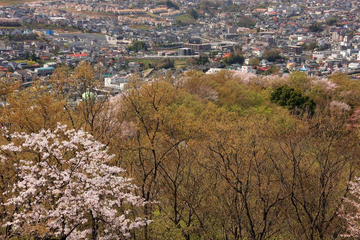 権現山の桜と秦野の町、