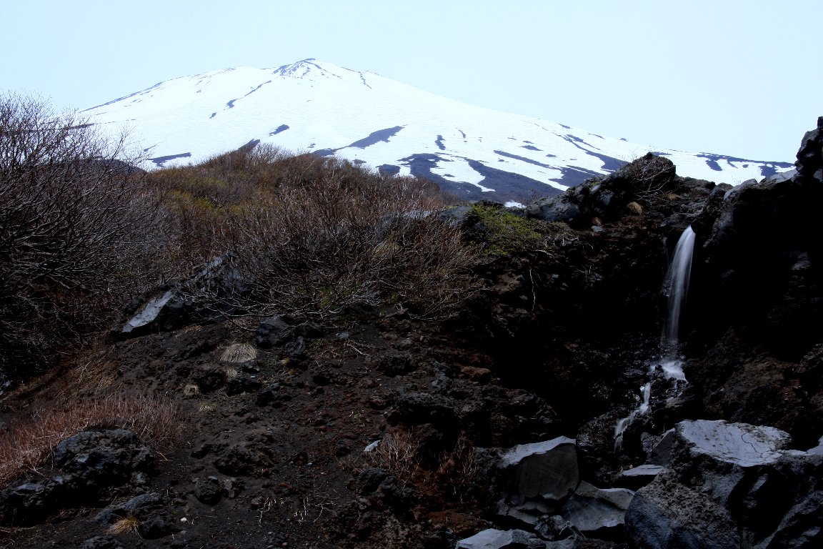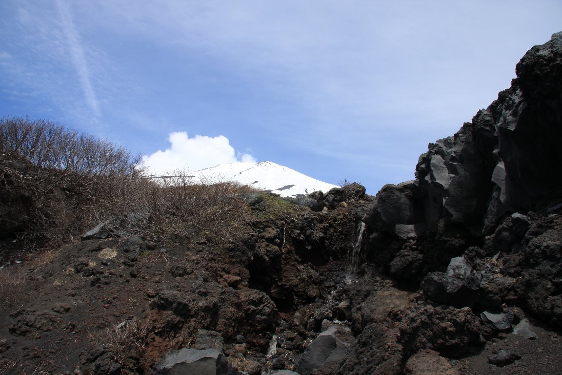 滝のように雪解け水が流れていました。