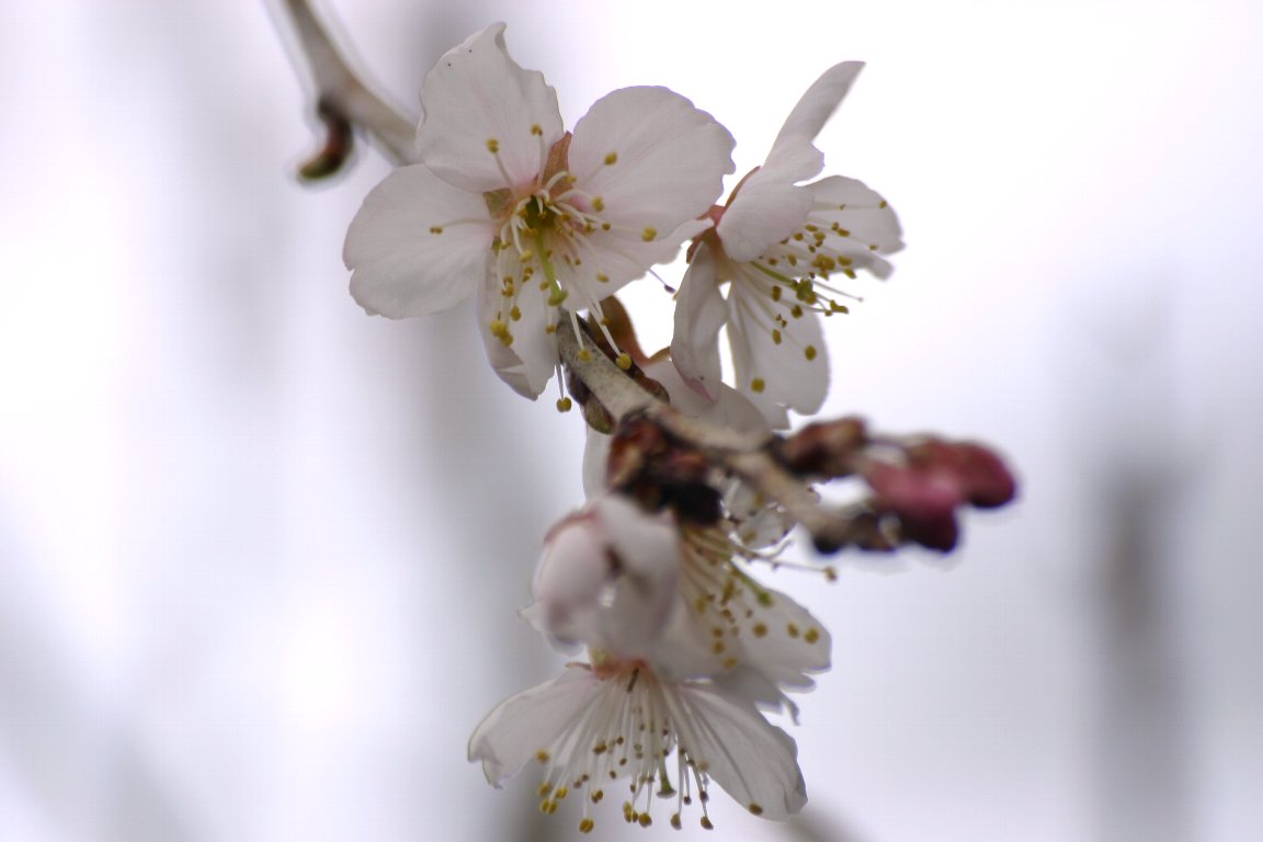 桜の木も、ちらほらと花が咲き始めましたが、この寒さで